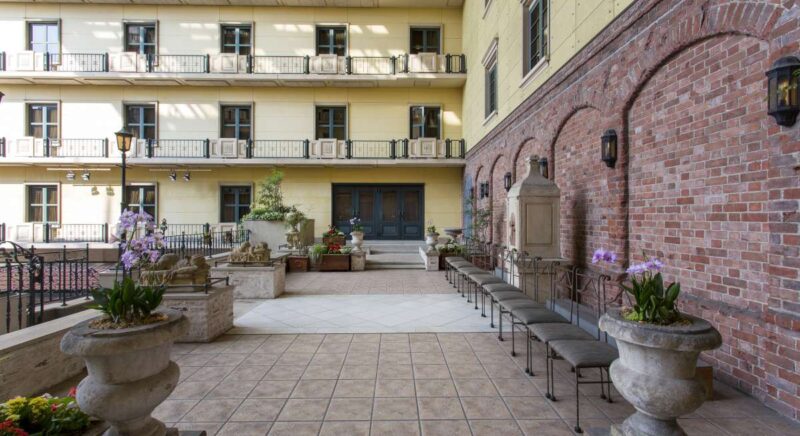 USJまで徒歩1分のオフィシャルホテル。緑溢れる大きな樹々が印象的なメインエントランスから足を踏み入れれば、大自然を彷彿とさせるやすらぎと寛ぎの空間がお出迎え。ウェルカムラウンジでは焼きたてパンケーキなどをご用意しております。イブニング・ライブキッチンサービスでは出来立てのホットドックをお楽しみください。