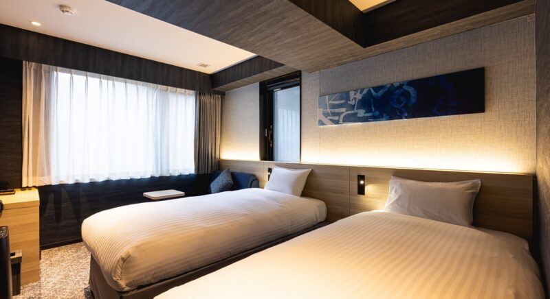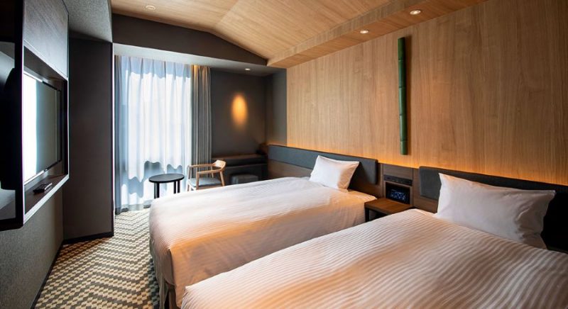 2024年「変なホテルプレミア京都 五条烏丸」としてリブランドオープン!琉球畳をイメージした正方形の畳を使用し和とモダンが調和されたお部屋でゆっくりリラックス。ベッドにはシモンズベッドのマットレスとロフテー快眠枕をご用意し、至福の眠りをご体感いただけます。