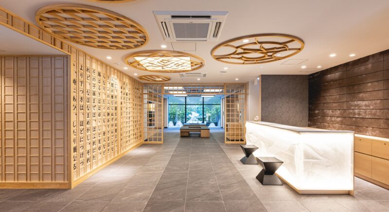 地下鉄烏丸線十条駅より徒歩3分、旅の拠点として最適なロケーション。ロビーは障子や和室など随所に和を感じられます。まるで自分の家のように寛いでいただけるよう、心で感じるおもてなしでお迎えいたします。