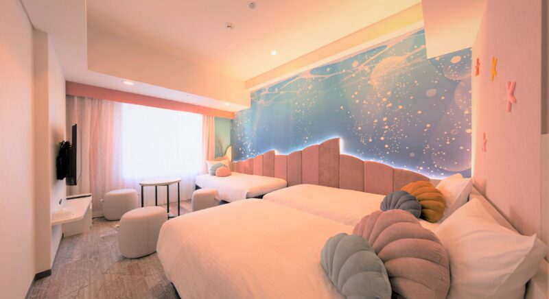ユニバーサル・スタジオ・ジャパンまで徒歩約10分・Zepp大阪ベイサイドと隣接。「花畑」「ジャングル」「宇宙」をコンセプトにしたポップで遊び心たっぷりの空間は、ワクワクがつまった楽しいホテルステイを演出します。