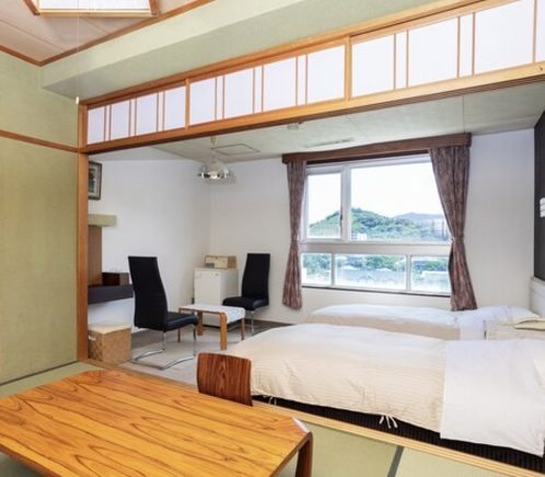 和室6畳と洋室ツインの部屋です。山側の景観の客室で、青島の大自然を一望します。
