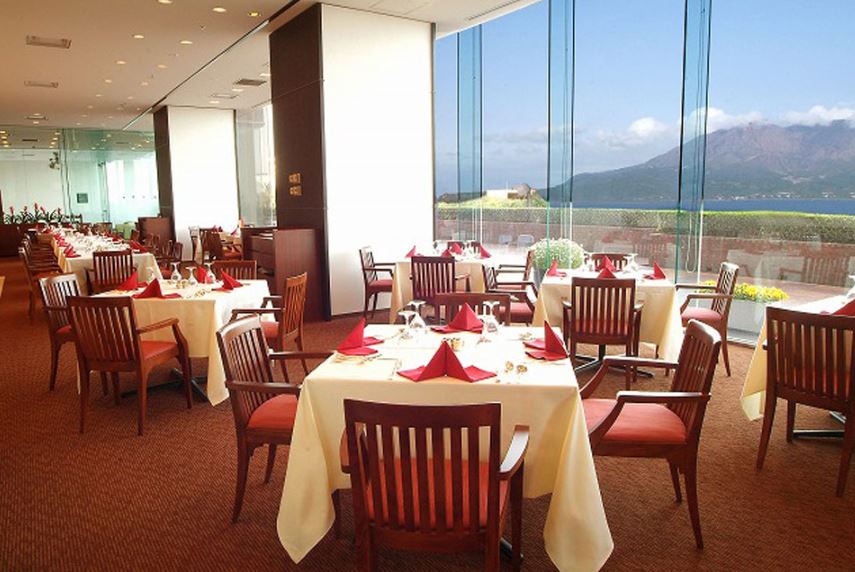 雄大な桜島と錦江湾を一望でき、開放的な空間でゆったりとした時間を過ごせるレストランです。