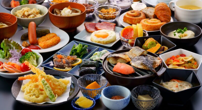 別府湾を一望できるオープンキッチンレストランで、夕食は和洋ハーフバイキング、朝食はフルバイキングをご堪能いただけます。