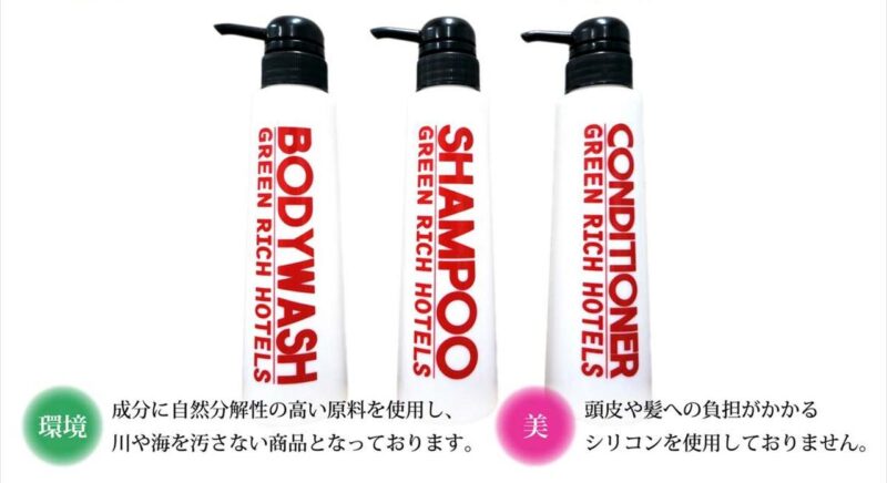 オリジナルヘアケア・ボディケアアメニティを全客室に設置