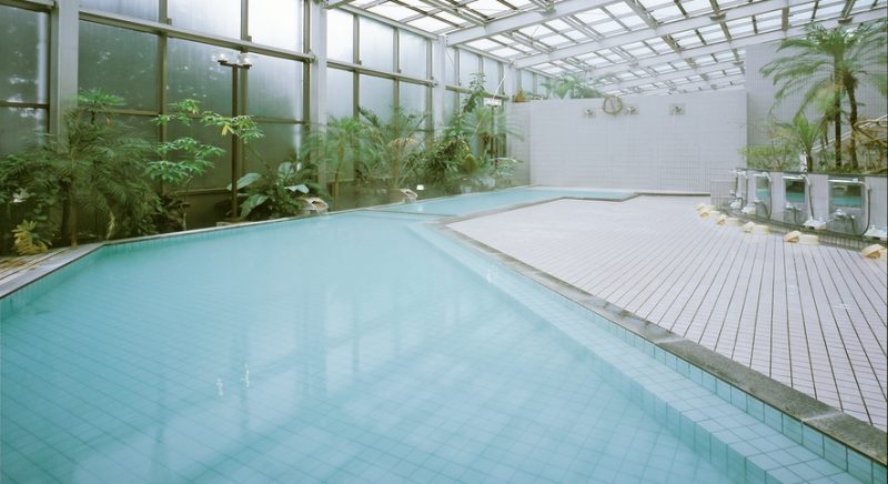 全てガラス張りの大浴場はとても明るく、打たせ湯、サウナの設備もあります。