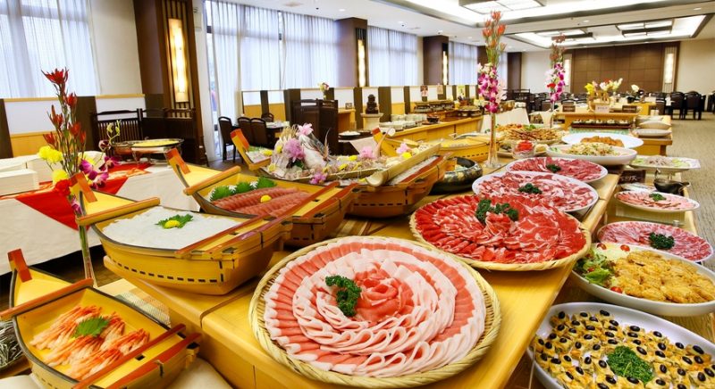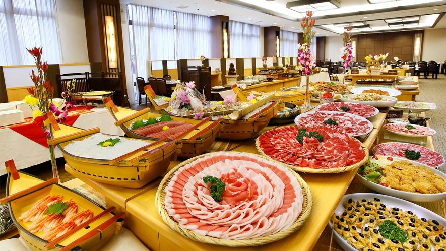 九州各地の郷土料理に和・洋・中のお料理がどっさり!九州8県の”うまいもん”と霧島の美味が饗宴!さらに旬な山海の恵みをブレンドして ボリューム満点!キャッスルのスペシャルバイキングです。シーズン毎に変わる料理フェアも人気のイベントです。朝食もバイキングとなります。【ご夕食時間】17:45~19:15/19:30~21:00、【ご朝食時間】7:00~9:00