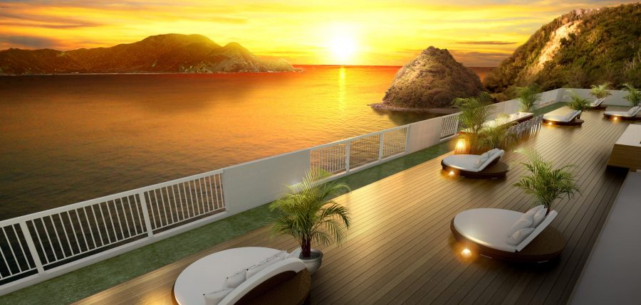 ディナーの後に夜景をみながら乾杯。屋上テラスにはドームソファやデッキカウンターが設置され特別な時間を演出します。