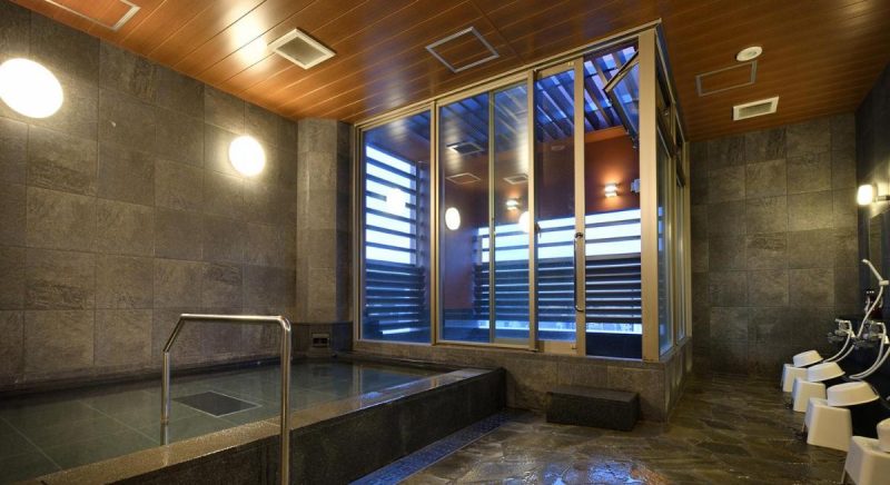 最上階には、露天風呂付きの大浴場があります。、開放的なお風呂でリラックスしていただくのと同時に、周辺に高い建物が少ないことから博多の街並みや福岡空港の飛行機などの眺望をお楽しみいただくこともできます。ご利用時間 15:00~25:00