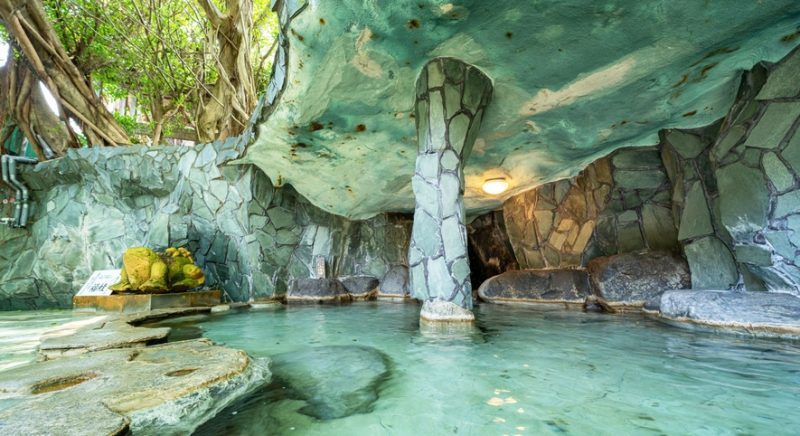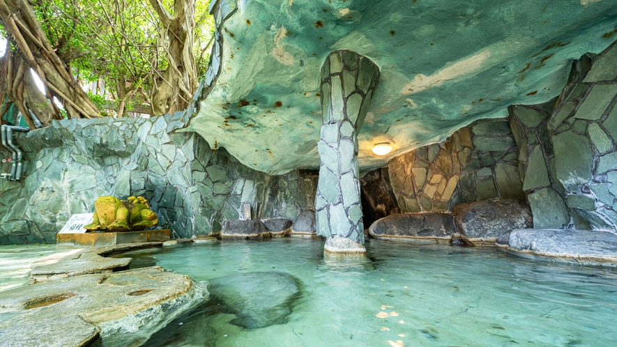 ゴムの木が茂る露天風呂は南国情緒そのものです。