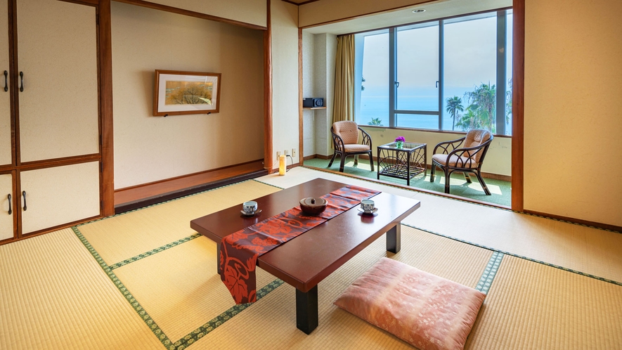 全室オーシャンビューになります。旅の疲れはやはり和室で。美しい錦江湾を眺めながらのんびりとお過ごし下さい。