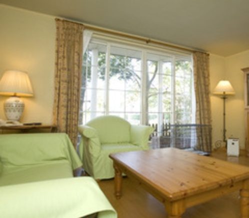 愛犬と一緒に憩いの時間を。ドッグヴィラは、場内で唯一愛犬との宿泊が可能。まるで自宅のように、リビングで愛犬とたわむれることもできます。