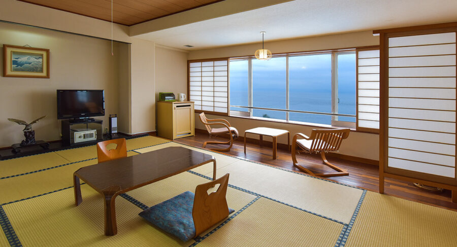 落ち着いた雰囲気の和室です。海側のお部屋からは錦江湾の絶景を眺めることが出来ます。