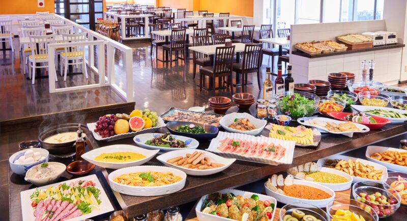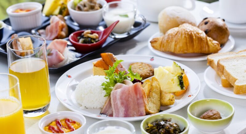 地産地消メニューで健康をチャージ。ブッフェスタイルにてご利用いただけます。(営業時間7:00-10:00)