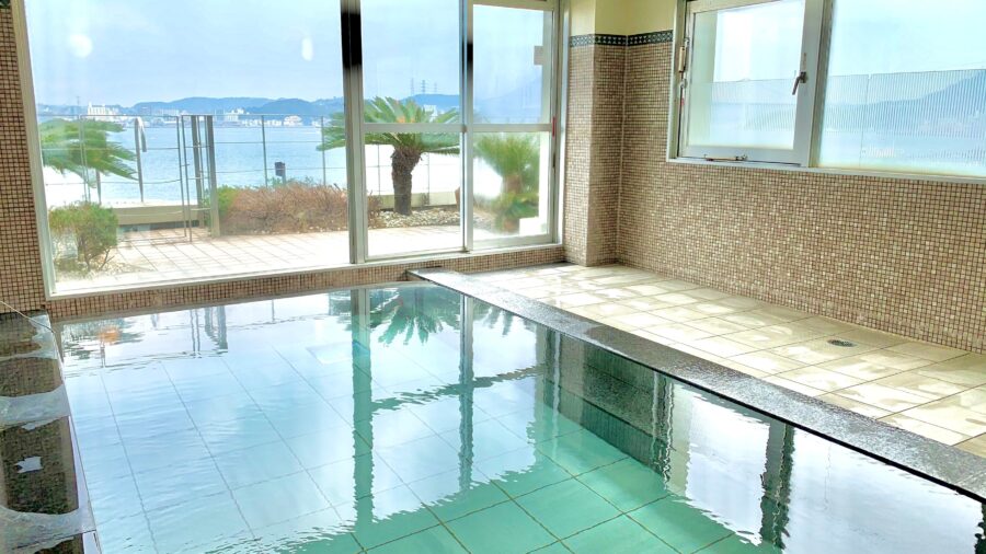 最上階9階に大浴場を完備。浴場からは関門海峡の景観が一望して頂けます。夜の光溢れる夜景、朝のすがすがしい海、どちらも当ホテル自慢でございます。