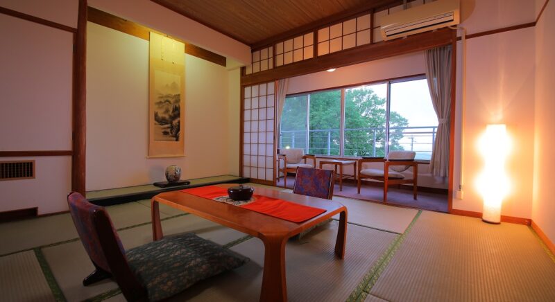 宿泊専用受付があるさくら館本館。眺めの良いゆったりとした和室を備えております。雨が降って移動が面倒だとか、お子様がいるので貸切がよいというお客様にはもってこいです。是非みなさんご利用ください。