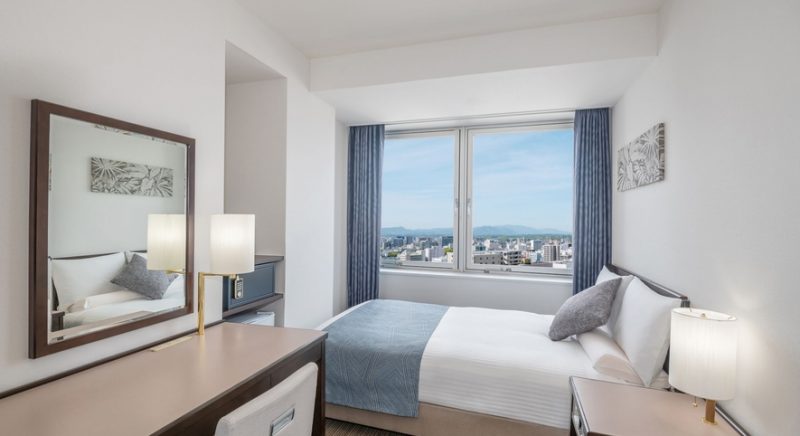 デュペスタイルのセミダブルベッドを備えシンプルながら快適性を重視。全室Wi-Fi完備でビジネスにもおすすめです。