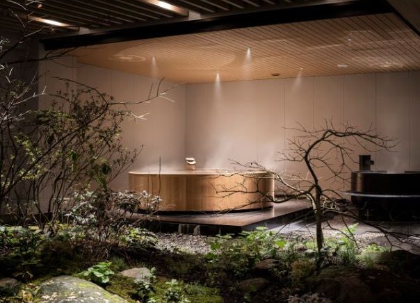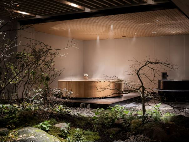「木の香りでゆったりくつろぐお風呂」をテーマに、もともと存在した雑木林を感じる造園がシンボル。木の香りがする温泉宿のような情緒とぬくもりを感じる空間をお楽しみください。