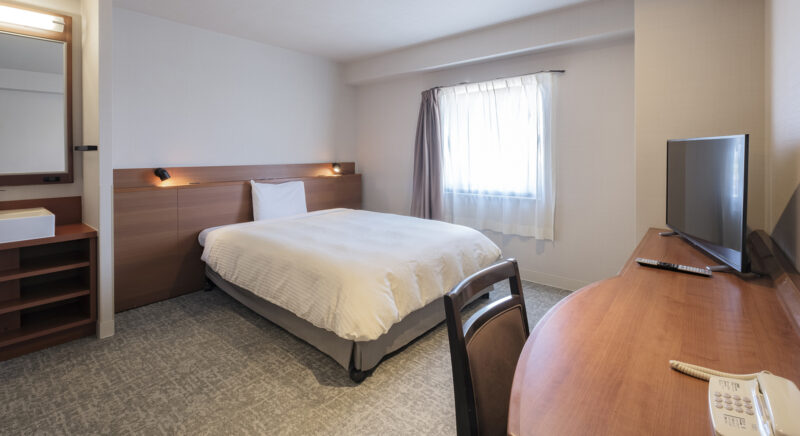 全室150cm幅のベッド完備で、ゆったりとした客室。お荷物が多くても、2名でご宿泊でも、余裕の広さです。