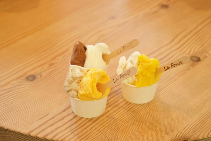 La Fonte (ラフォンテ)は、香料や着色料を加えずに、素材の味を活かした島ジェラートが味わえる。ショウケースには10種類ほどのジェラートが並んでい、毎朝選ばれたフレーバーは、一年中食べれるものから季節限定もあり、行くたびに新しい味や、懐かしい味に出会えます♪