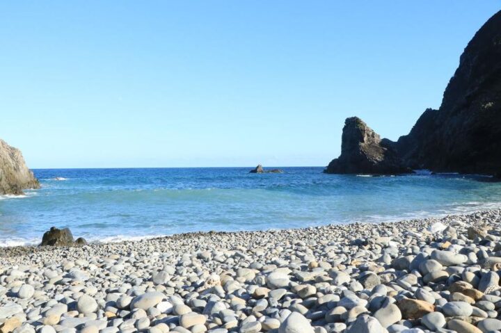 この海岸は太平洋に面していて、海岸の石・砂利は打ち寄せる荒波にもまれ、丸っこくなっています!波が引くときには、石が擦れて太鼓のような音が聞こえる!石の持ち出しは禁止なのでご注意。