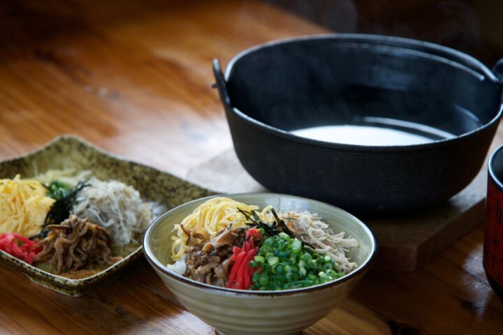 食べ方は至ってシンプルで、お茶碗にご飯をよそい、具材をのっけってスープをIN!「ひさ倉」の鶏飯は放し飼いの地鶏を使い、あっさりしながらもコクのあるスープが自慢!島内には他にも多数のホテルレストランや飲食店で鶏飯が味わえる♪