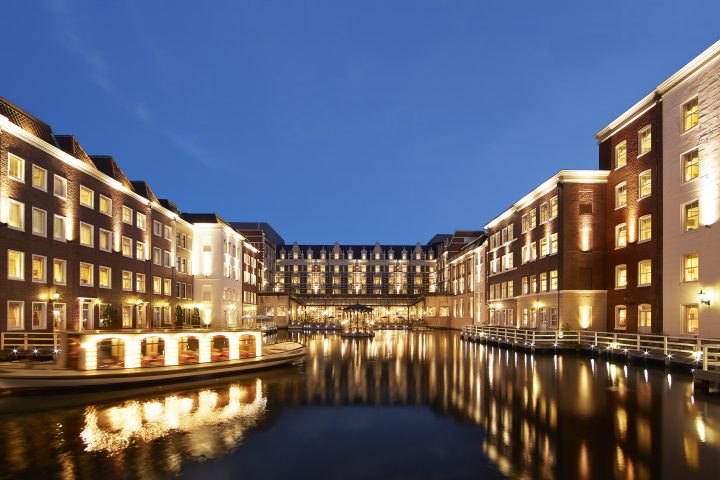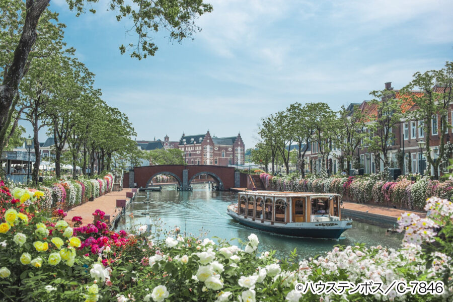 広大な敷地の中に四季折々の美しい花々が咲き誇り、レンガ造りの重厚な街並みをめぐる運河が安らぎと癒しを与えてくれる滞在型リゾート。世界最大のイルミネーションは圧巻!