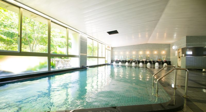 満天望温泉の大浴場・露天風呂からは阿蘇五岳と、果てしなく広がる緑の草原の圧巻ビューが楽しめる!滞在中レンタカー付!