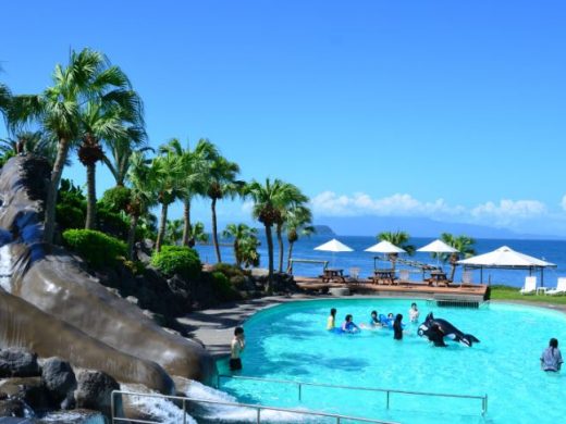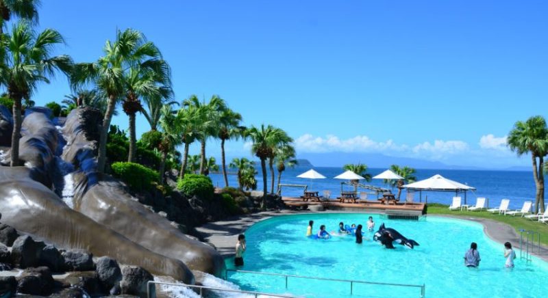 薩摩半島最南端・錦江湾沿いに建ち、広大な敷地には南国の花々や木々があふれ、隣接する美術館ではアートを感じられます。