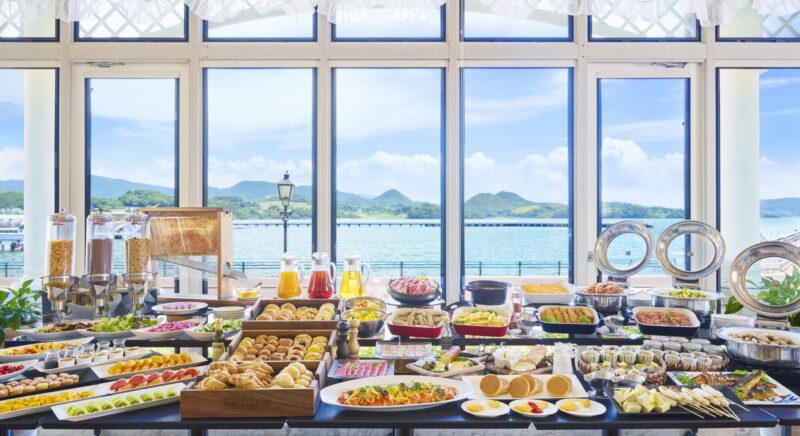 ヨーロッパの街並みを再現したテーマパーク「ハウステンボス」内でも、美しく穏やかな大村湾のパノラマを一望する絶好のロケーション。