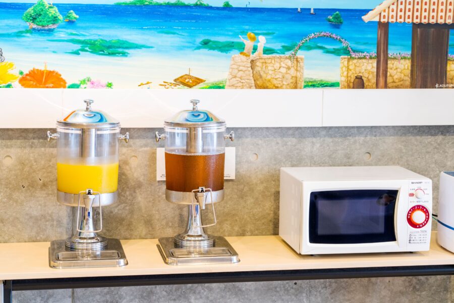 ロビーにて、シークァーサー・さんぴん茶・アイスコーヒー又はホットコーヒーを滞在中ご利用いただけます。