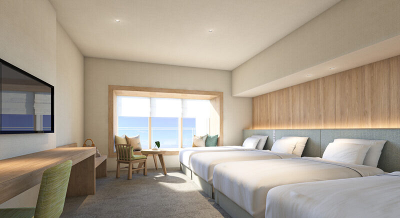 2022年12月浦添西海岸にオープン。「やんばるとつながる場所」をコンセプトに、木の上でくつろぐようなやすらぎを感じながら、眼下に東シナ海を一望できる開放感ステイが叶うシティリゾートホテル。北谷や那覇へのアクセス良好!
