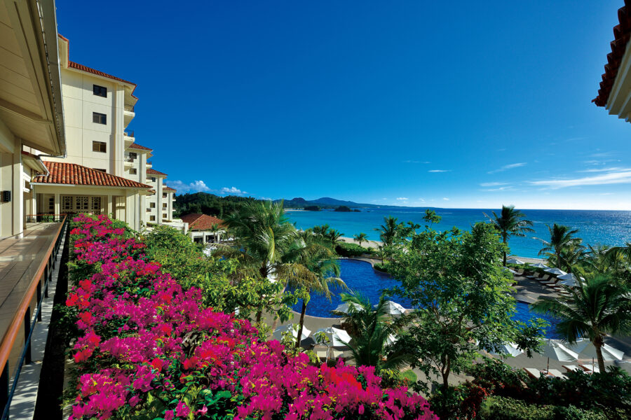 部瀬名岬に佇むビーチリゾート。青く輝く東シナ海、亜熱帯の緑、色鮮やかな花々に囲まれた極上のラグジュアリーリゾート