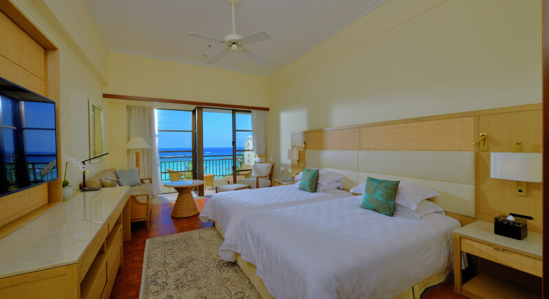 テラスの向こうに南国の青い海が広がる開放的な客室で安らぎと寛ぎの休日を。