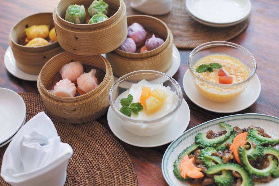 日中は降り注ぐ木漏れ日を、夜は宝石を散りばめたような夜景を眺めながら琉球松のテーブル&チェア、風が通り抜けるダイニングで、本格飲茶や中華料理を心ゆくまでお楽しみください。