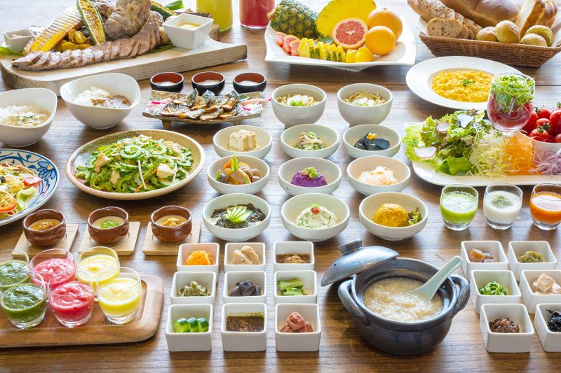 朝昼晩、発酵の力でカラダとココロが喜ぶごはんをご用意!有機栽培された色とりどりの島野菜や、平飼いで育った健康たまご、無投薬の安心な「結のエビ」などを使った体にやさしい素材を中心をお楽しみいただけます。