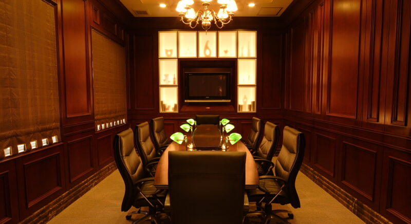 木目と照明が美しい豪華なインテリアのビジネスルームには、42型プラズマテレビを設置。ご持参のパソコンでブロードバンドインターネットができ(接続無料)、皆様のビジネスワークをサポートします。
