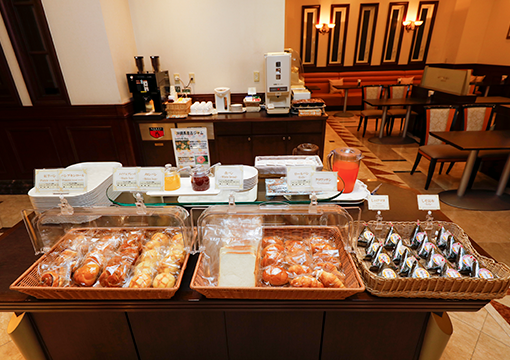 おにぎり・パン・サラダ・コーヒーをお気軽にお好きなだけとっていただけるのでお急ぎのビジネスマンにも好評です。