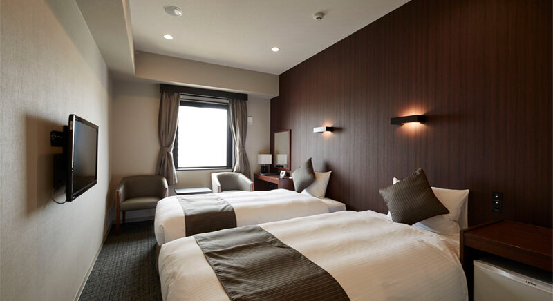 ダークな木目調と洗練された雰囲気のハイグレードなお部屋でおくつろぎください。ベッド幅は110cmでご用意しております。