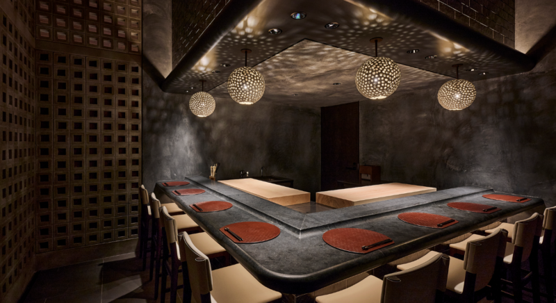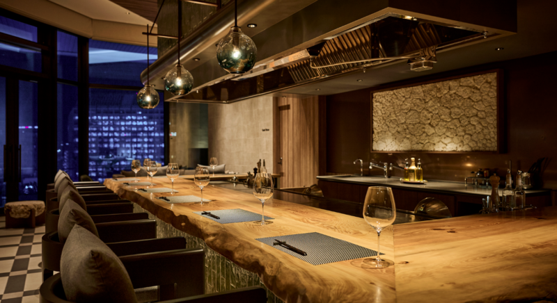 琉球松で設えたカウンターテーブルで、会話と共に楽しむ鉄板焼レストランです。