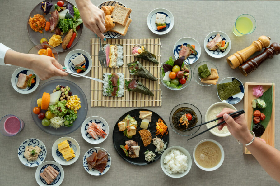 沖縄の風土を感じる地産地消の食材、季節ごとの旬の食材をふんだんに使った、和と洋の料理をビュッフェでお届け。
