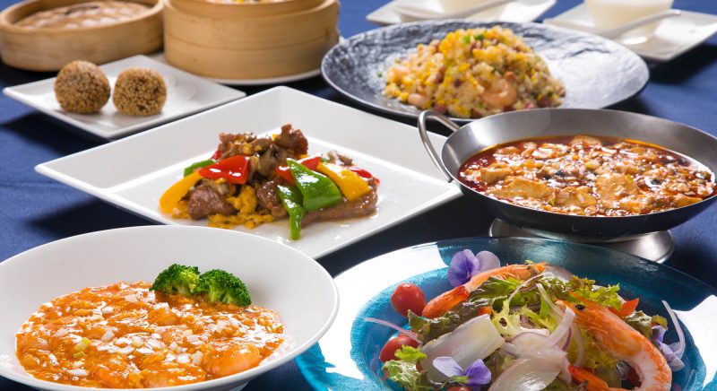 モダンチャイニーズの雰囲気の中で、本格的な四川料理を。眼下に広がる青い海が刺激的な味わいをマイルドに演出します。