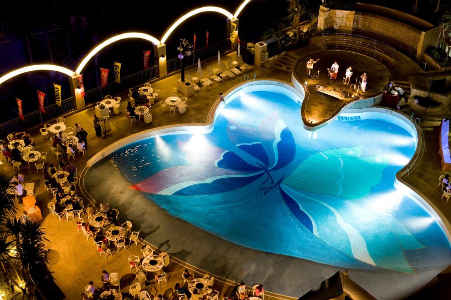 昼は太陽の光の中で蝶と一緒に泳いだり、夜は美しいルミライトが、輝くファンタジックなシーンを演出。