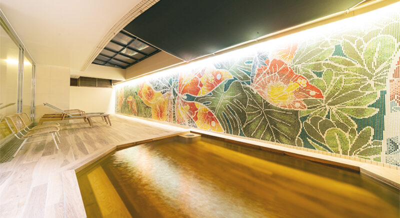 約800万年前の化石海水を源泉にもつ食塩泉。沖縄のエレメントを取り入れた新琉球スタイルの空間。