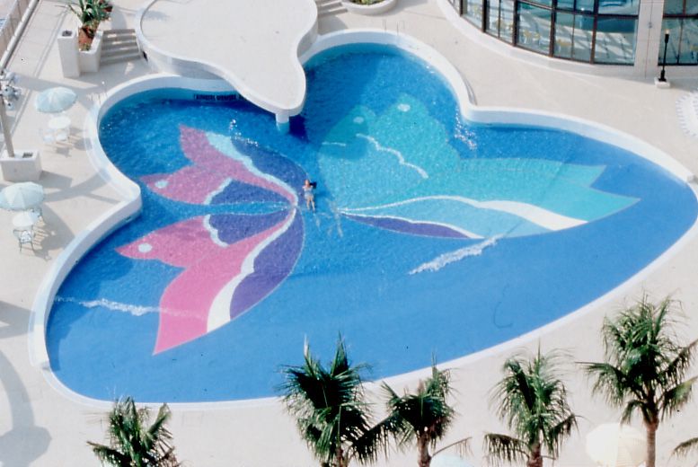 昼は太陽の光の中で蝶と一緒に泳いだり、夜は美しいルミライトが、輝くファンタジックなシーンを演出。