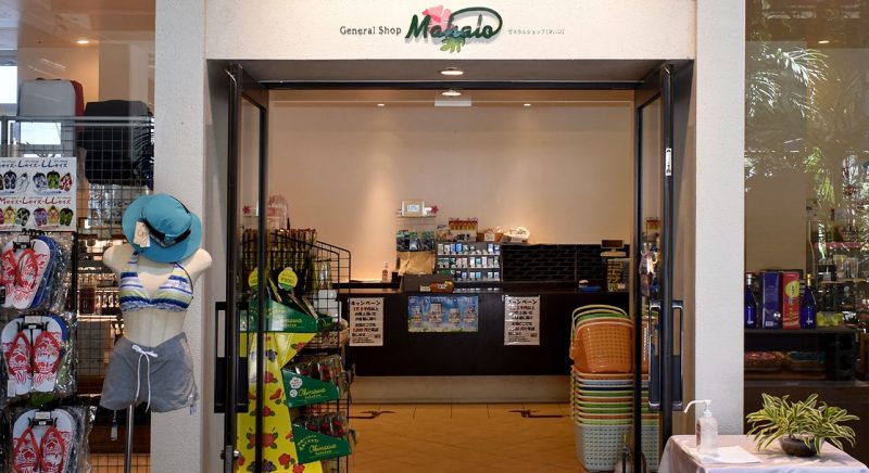 沖縄らしいアクセサリーもあるスーベニアコーナー。水着をはじめ浮輪、サンダルなどのビーチ用品を揃えたコーナー。日用雑貨を揃えたコーナーといったご滞在中に必要なものを品揃えし、沖縄ならではのお土産品をラインナップしております。