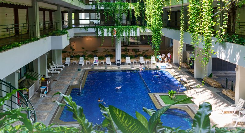 ご宿泊のお客様は無料です。半屋外の温水(冬季)で、一年中遊泳が可能です。