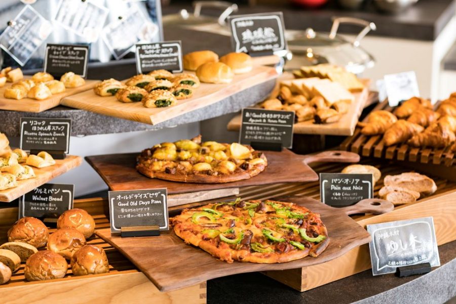 毎朝早朝よりその日の分のパンを仕込み、焼きあげています。クロワッサンやピザをはじめ、全7~8種類の様々なパンを毎朝ご用意しています。