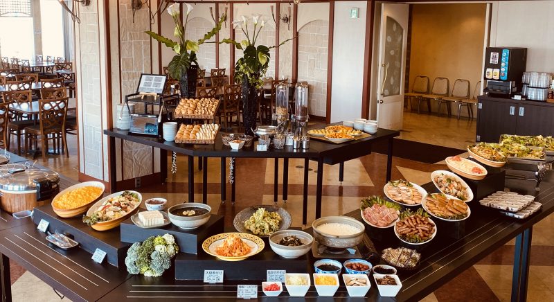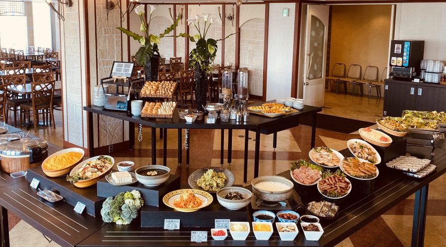 那覇市街の賑やかな景色を一望しながら沖縄の食材や郷土の味にこだわった種類豊富な朝食をご用意。