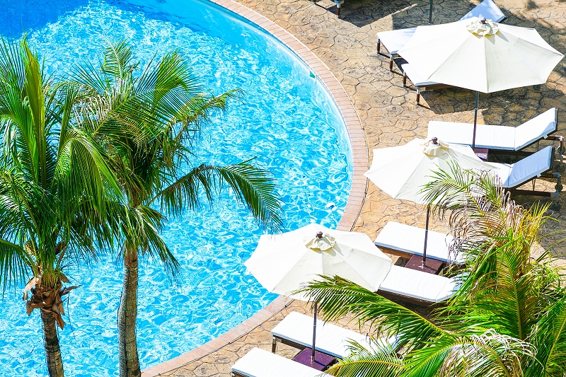 爽やかな天気の下、プールサイドでくつろぐ時間は特別な休日となります。