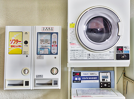 大浴場の入り口、同じフロアー内にコインランドリーを設けております。大浴場を利用している間にお洗濯ができるので、貴重な旅行の時間を有効活用できます。